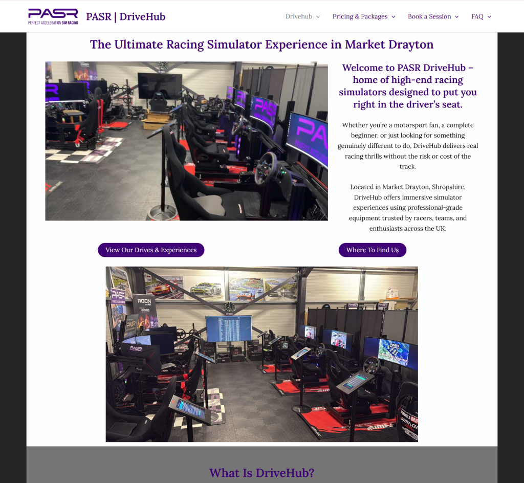 Custom website for a racing simulator events company.