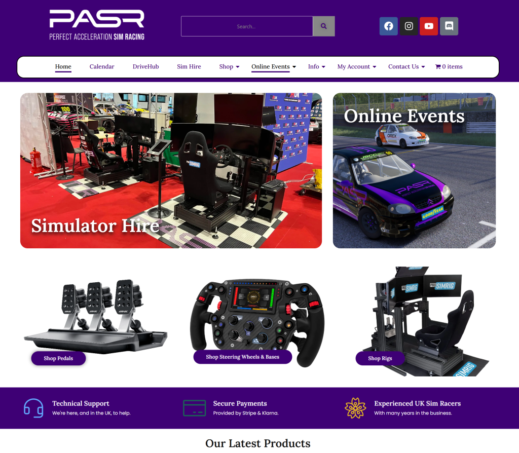 Custom website build including calendar and online store to represent all their sim racing needs.