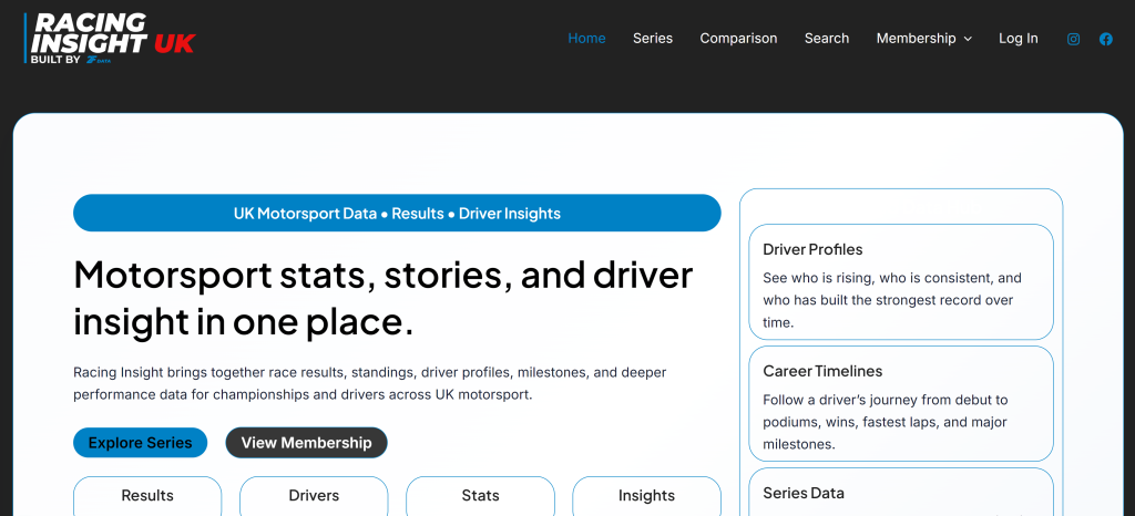 Data-driven motorsport platform transforming race results into structured insights across drivers, events, and series.